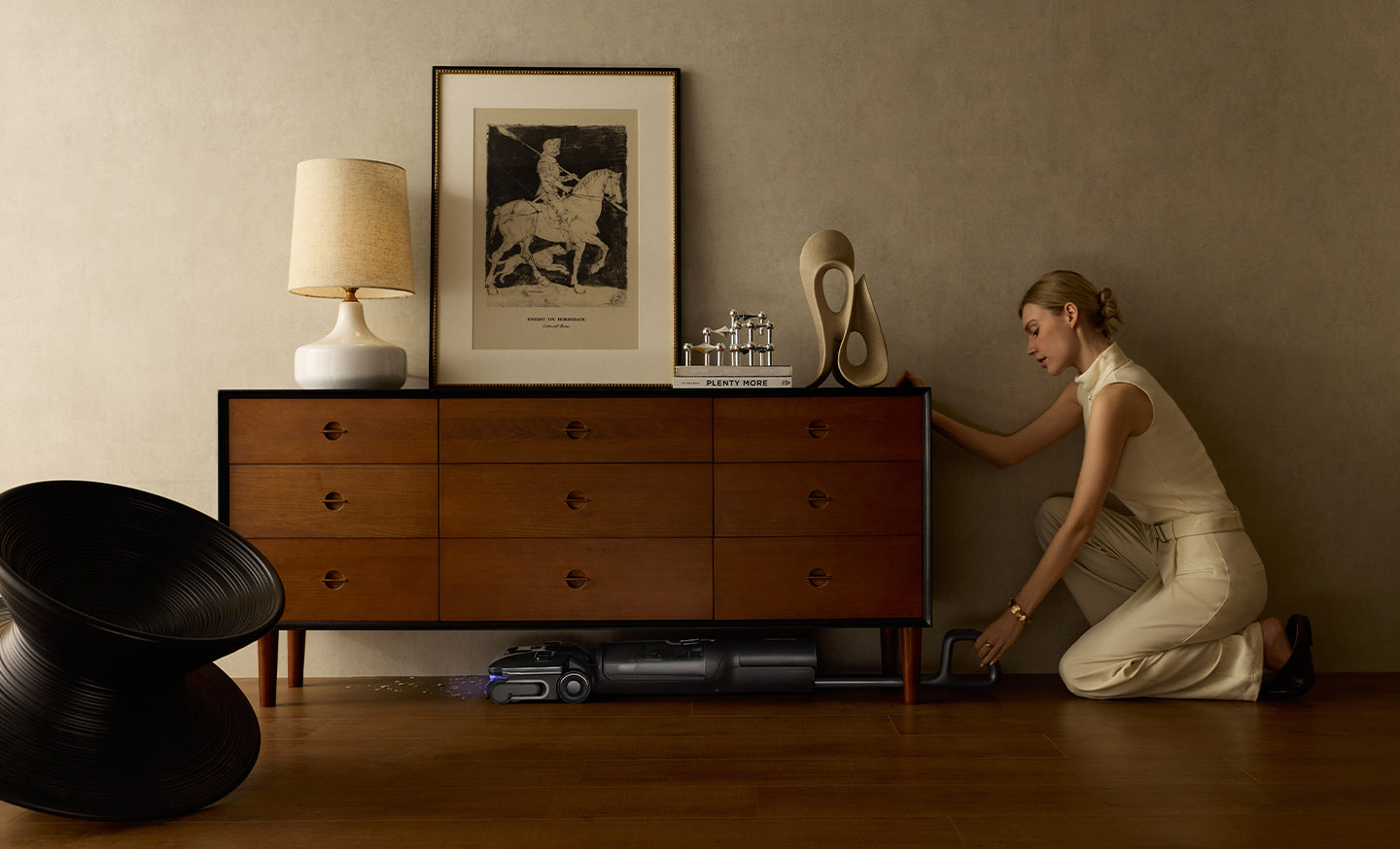 Se stísněnými prostory si poradí díky tenké 12,5 cm ploché konstrukci, která udržuje plný výkon sání v úhlu 180°. Díky extra nízkému profilu se vysavač dostane do každého rohu a nenechá nikde žádný prach.