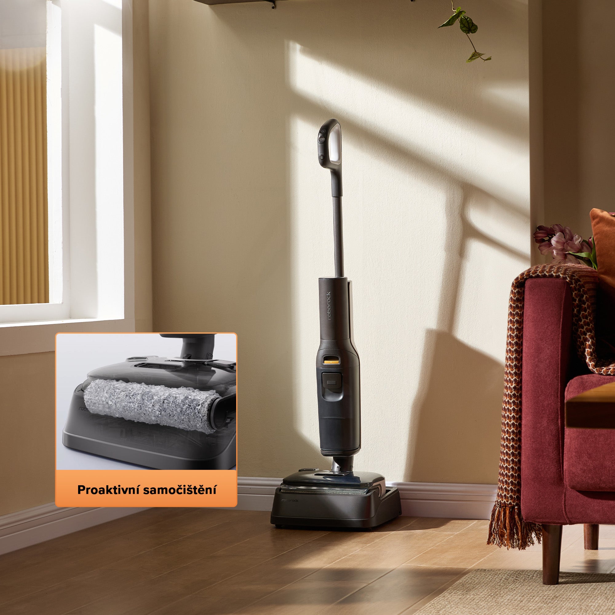 Díky nízko umístěné nádrži na vodu a konstrukci s rozsahem otáčení 70° umožňuje bezproblémový pohyb kolem nábytku i různých překážek a zajišťuje snadnější a efektivnější úklid.