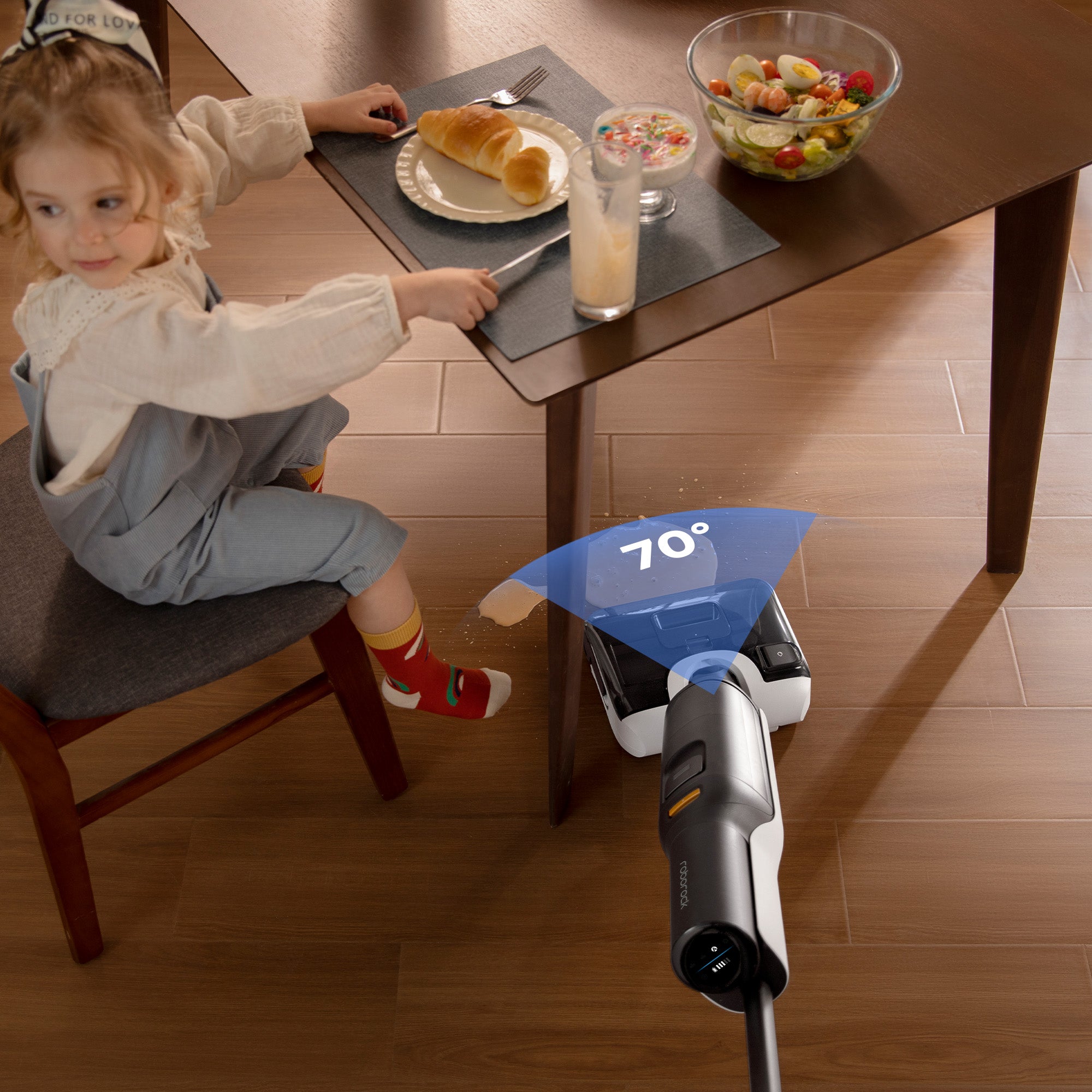 Projede stísněnými prostory díky ploché konstrukci o výšce jen 12,5 cm, která udržuje plný sací výkon pod úhlem 0°. Díky extra nízkému profilu se vysavač dostane do každého rohu a nenechá nikde žádný prach.4