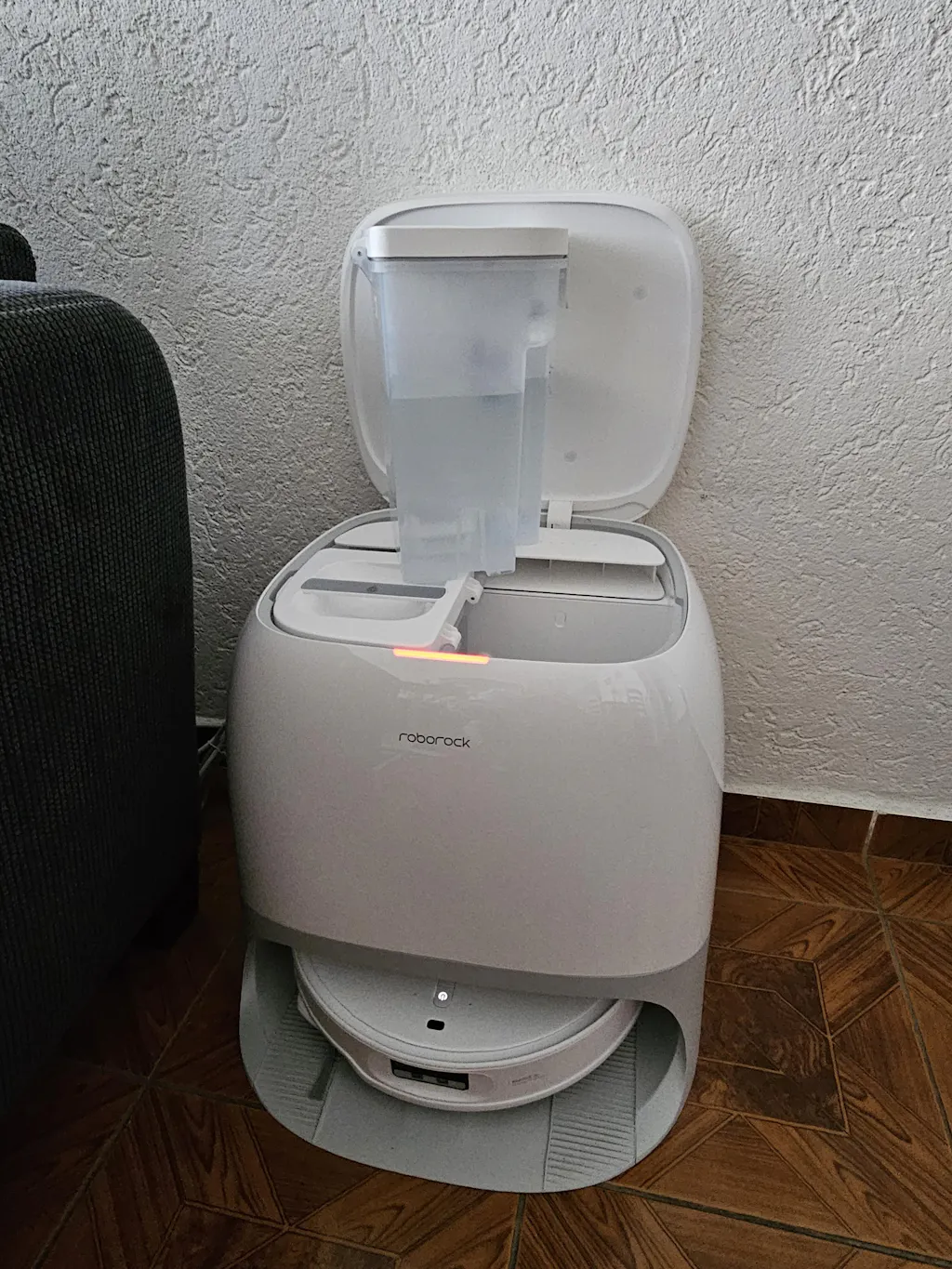 V případě potřeby automaticky naplní nádrž robota teplou vodou.