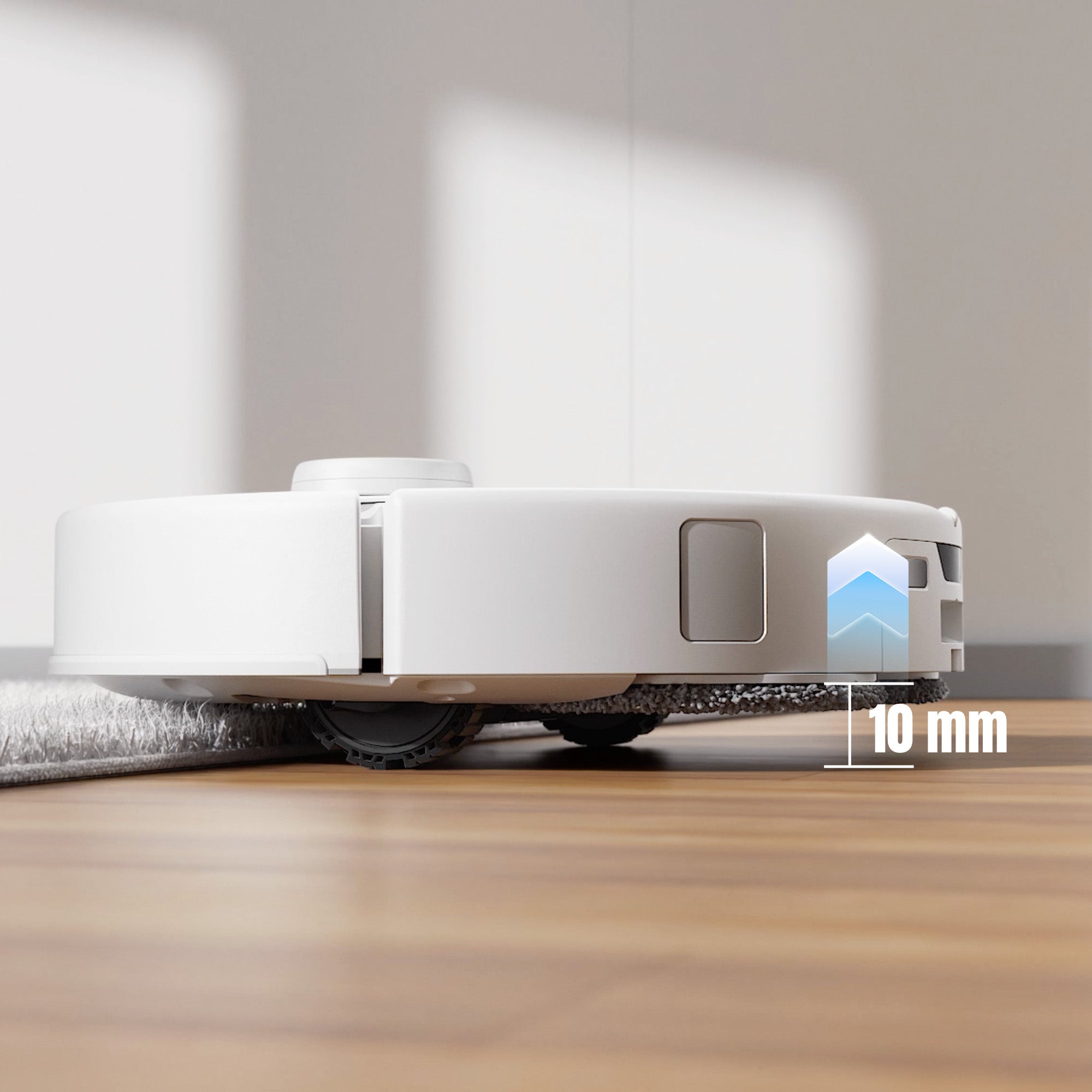 Šasi AdaptiLift™ s možností zvednutí o 10 mm zvyšuje čisticí výkon na kobercích se středním až vysokým chlupem. Díky této funkci výkonný sací systém proniká hluboko do vláken koberce, zabraňuje ucpávání a zajišťuje vynikající výsledky úklidu v podobě čistějších a svěžejších koberců.*Nastavení čištění koberců se středně dlouhým a dlouhým chlupem je třeba aktivovat ručně v aplikaci Roborock.