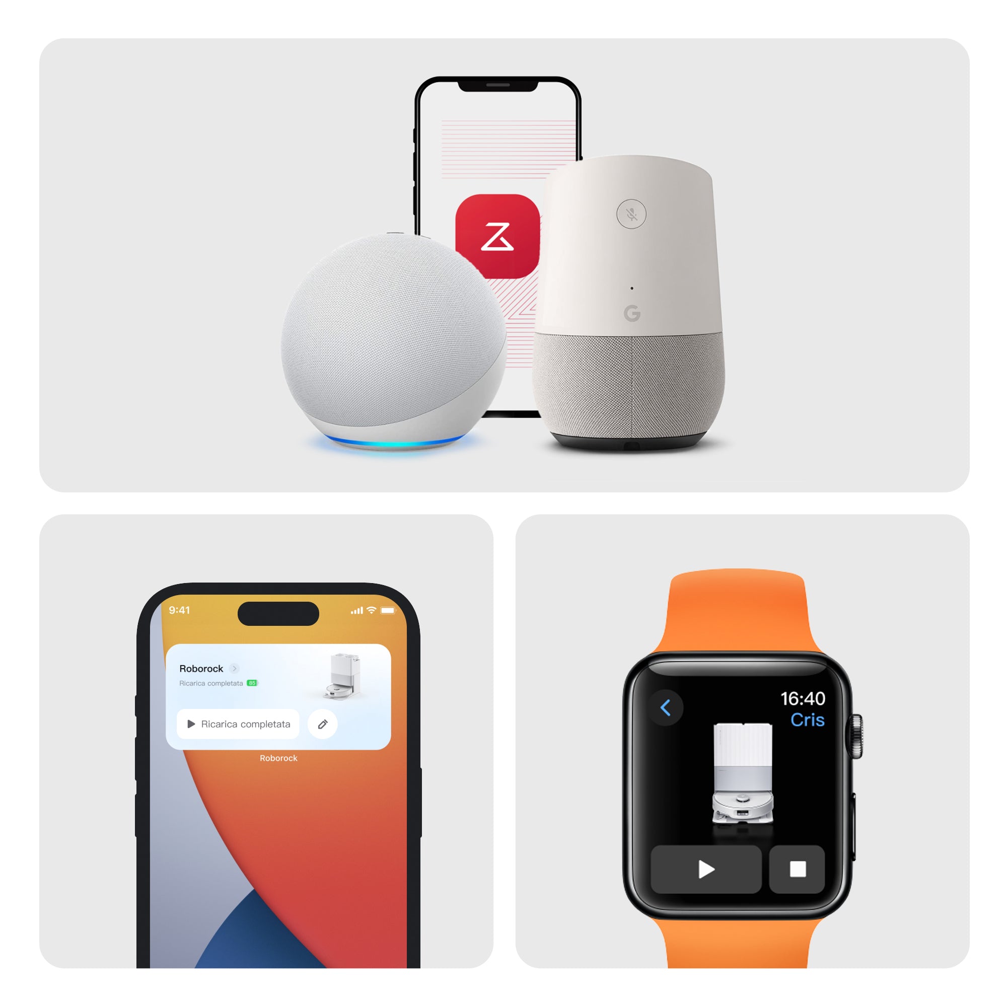 Hlasové ovládání pomocí aplikací třetích stranHlasové povely přes asistenty Amazon Alexa, Apple Siri nebo Google Home.Ovládací widgetyPřístup k vlastním plánům úklidu jedním kliknutím.Aplikace pro Apple WatchRychlé spuštění úklidu nebo kontrola stavu.