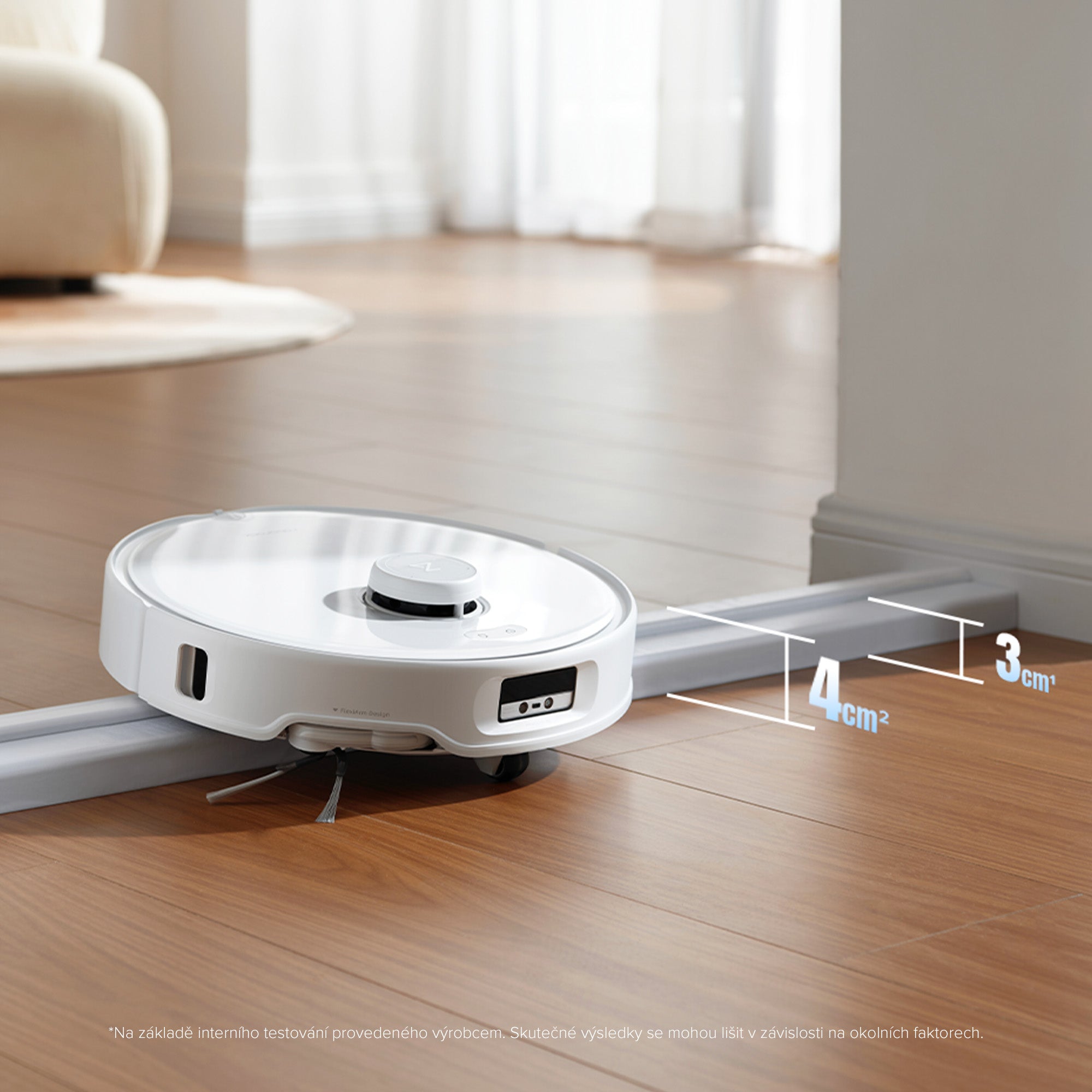 Přejezdy vysokých prahů již nejsou problémem díky šasi AdaptiLift™. Automaticky zvedá všesměrové kolečko, aby robot zvládl přejet standardní prahy s výškou do 3 cm* i složitější dvoustupňové prahy s výškou do 4 cm*, což je nejvyšší hodnota v odvětví**, a zajišťuje tak plynulý pohyb po všech površích.*Na základě interního testování provedeného výrobcem. Skutečné výsledky se mohou lišit v závislosti na okolních faktorech.**Na základě výzkumu provedeného výrobcem k 1. září 2024 v kategorii robotických vysavačů.