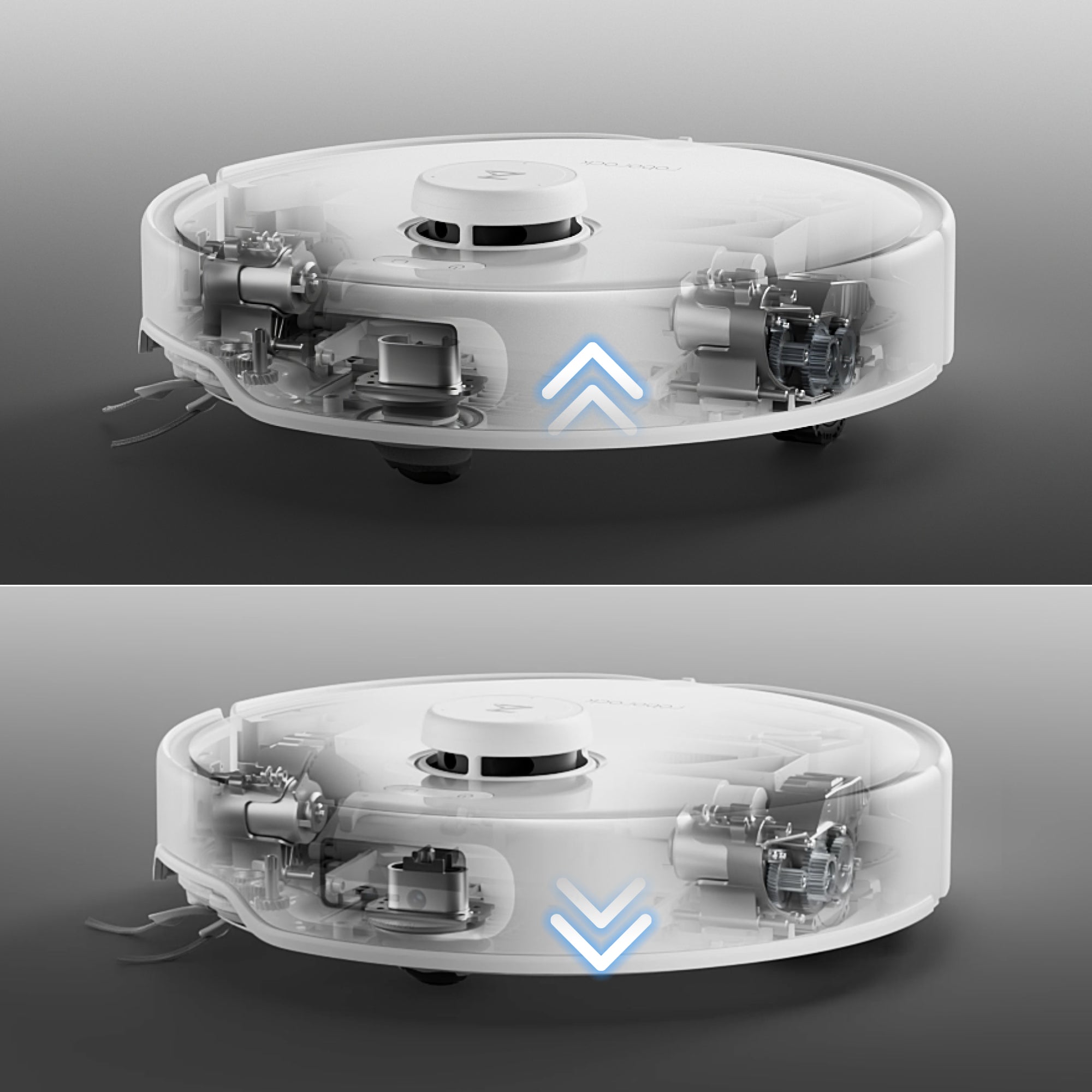 Proměňte svůj úklid díky vůbec prvnímu* šasi AdaptiLiftTM. Tento špičkový systém se může pochlubit nezávisle nastavitelným ovládáním tří koleček, které umožňuje zvednout celý podvozek o 10 mm* nebo zvednout pouze přední, zadní, levou nebo pravou část. Unikátně se přizpůsobí prostředí jakékoli domácnosti a snadno zajistí optimální pokrytí úklidu.Společnost Roborock jako první v odvětví robotických vysavačů začala sériově vyrábět produkt se systémem zvedacího šasi s ovládáním tří koleček a tuto technologii oficiálně uvedla na trh ve 3. čtvrtletí roku 2024.**Na základě interních testů provedených výrobcem lze šasi zvednout až o 10 mm.Skutečné výsledky se mohou lišit v závislosti na prostředí domácnosti.