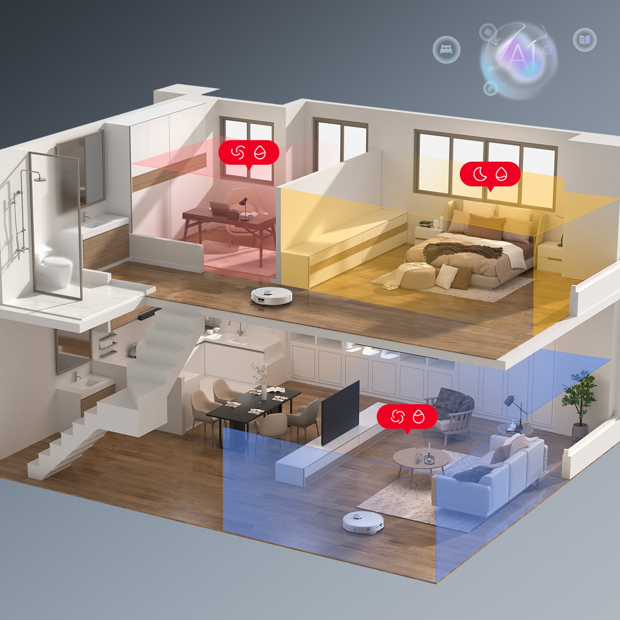 Roborock SmartPlan™ inteligentně generuje režimy úklidu podle vašich zvyklostí, typů místností a podlahových materiálů a automaticky upravuje nastavení a předvolby. Užijte si bezstarostný úklid bez nutnosti ručního nastavení režimu.