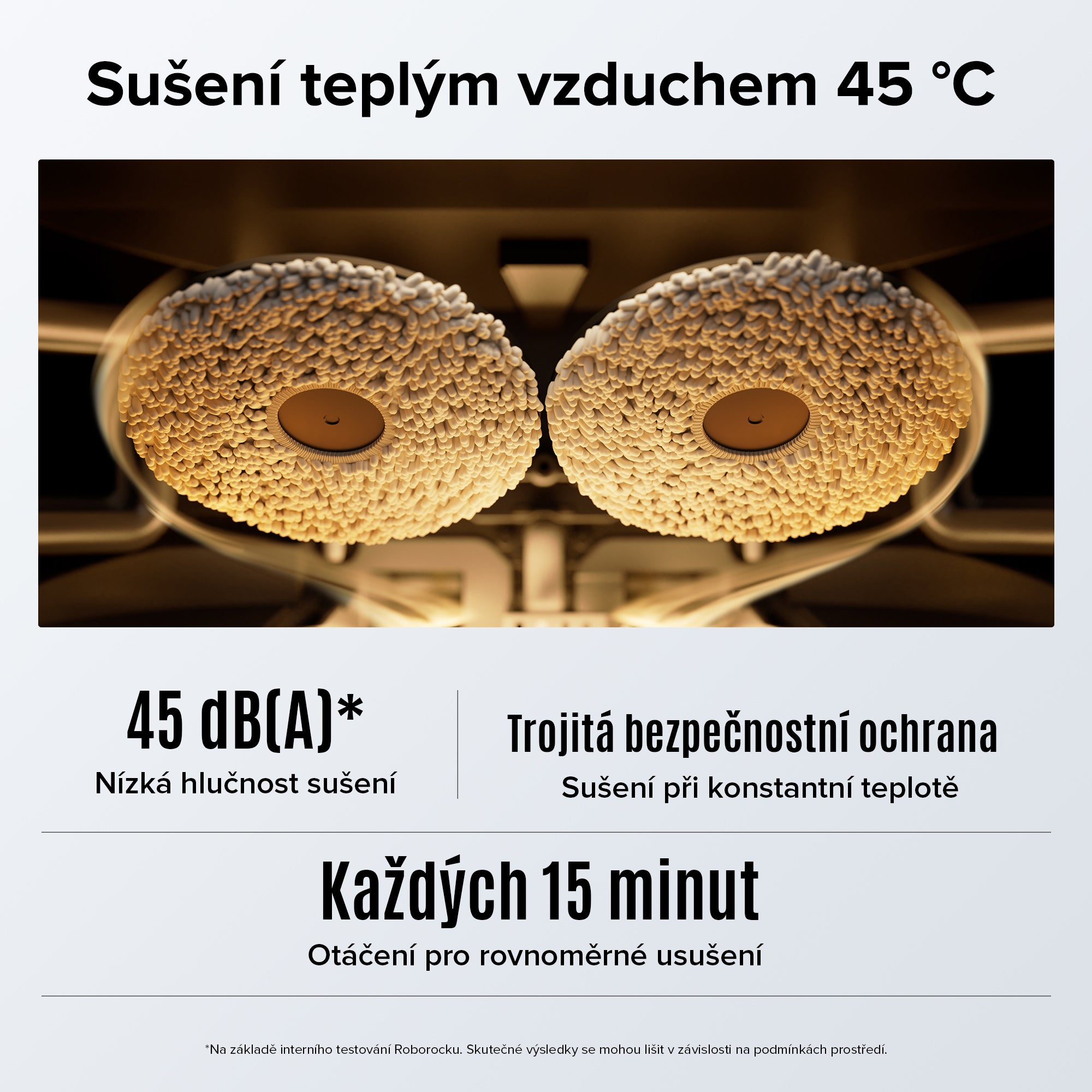 Pro udržení čerstvosti mopů a doku se používá sušení teplým vzduchem. Tím je zajištěno nejen hygienické prostředí, ale také se zabrání vzniku nežádoucích pachů. Bez námahy odstraníte chlupy domácích mazlíčků při zachování tichého a klidného provozu.