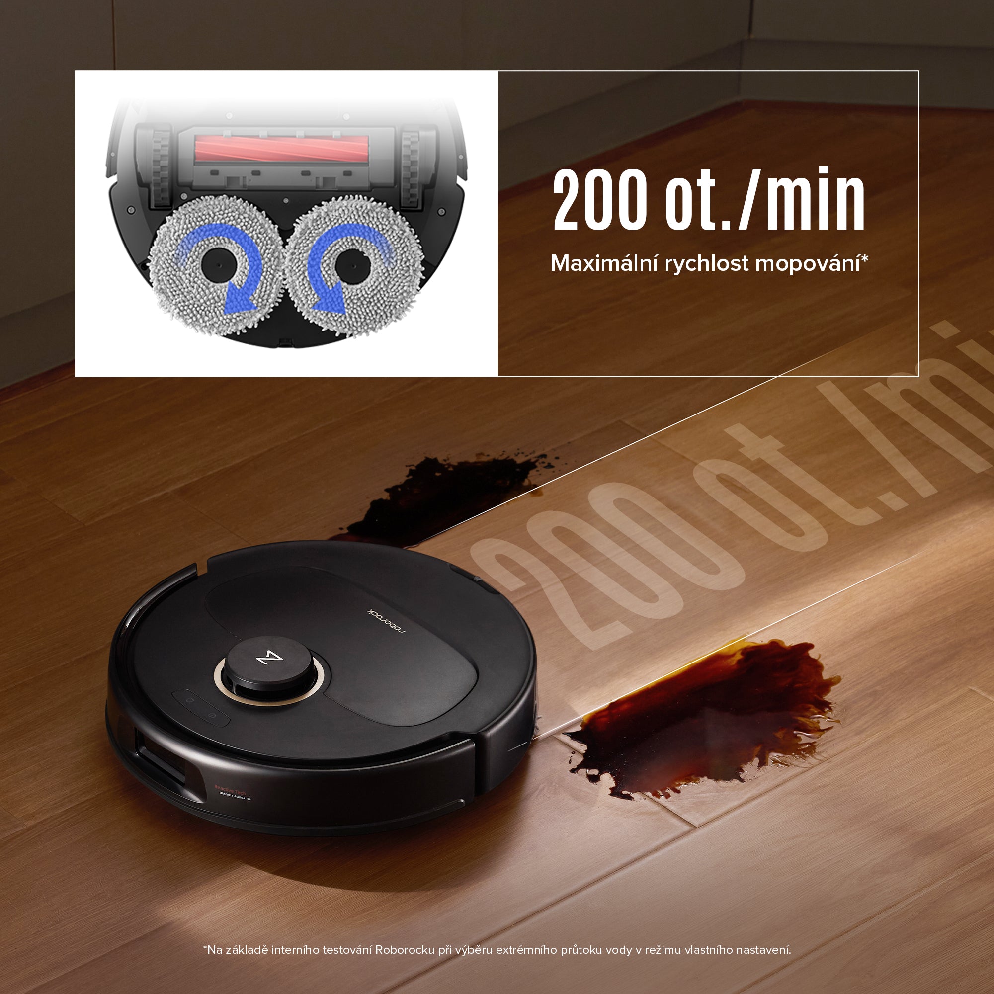 Dvojité mopovací polštářky se roztočí až na 200 otáček za minutu, odstraní odolné skvrny a napodobí výsledky ručního mopování.