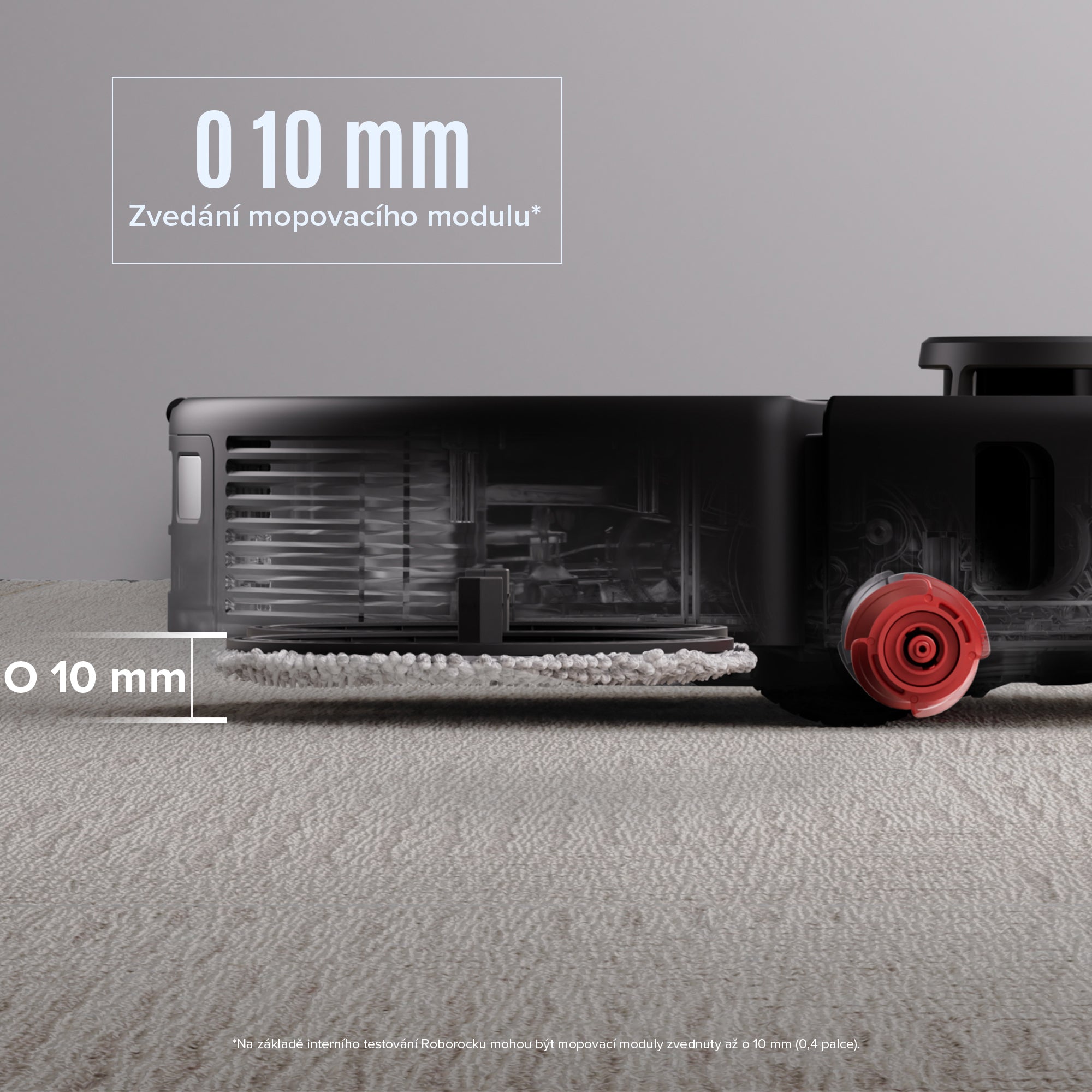 Mopovací modul se dokáže zvednout o 10 mm, aby se při úklidu nezvlhčoval koberec s krátkým vlasem.