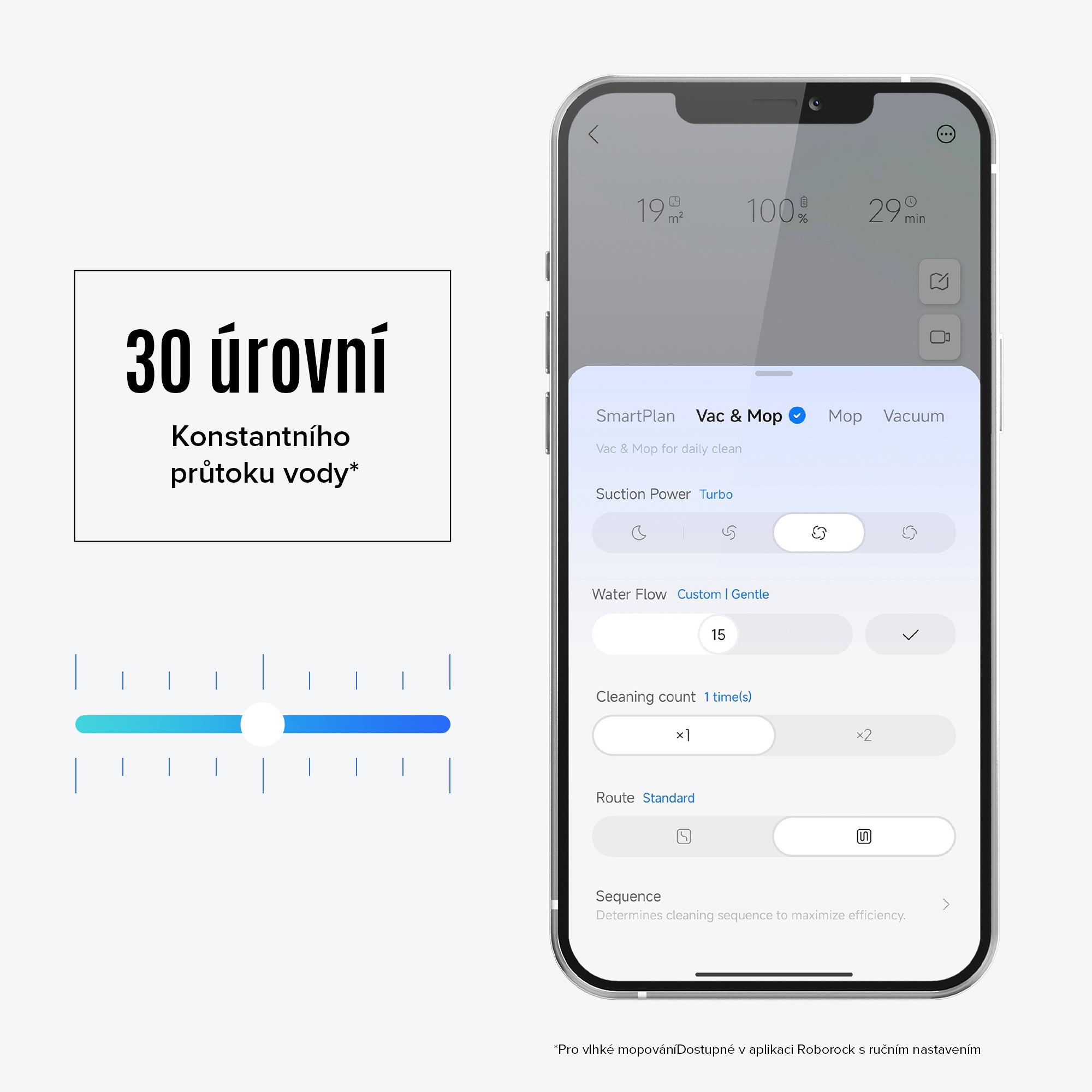 Průtok vody můžete jemně nastavit v podrobných 30 úrovních, aby vyhovoval potřebám různých typů podlah a vlhkostním podmínkám.