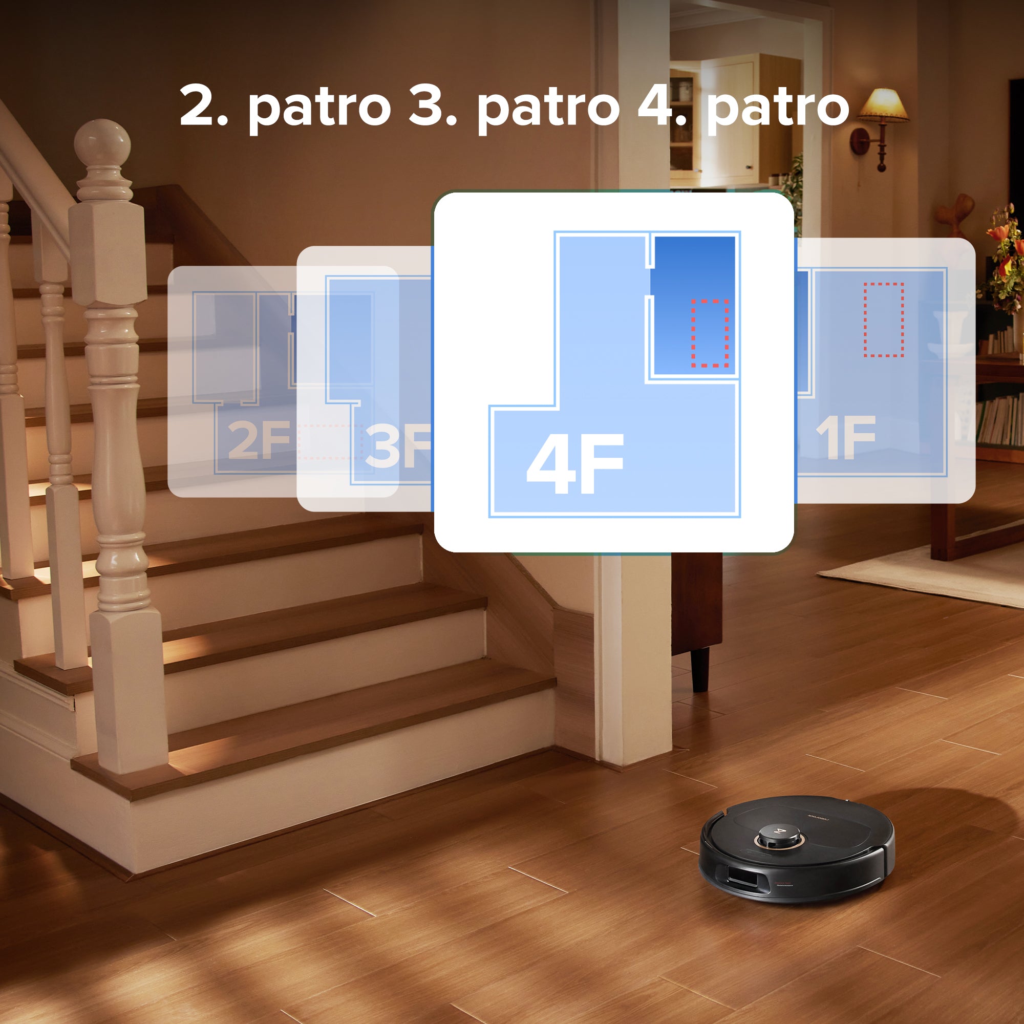 Systém vícepodlažního mapování automaticky rozpozná a vytvoří mapy až 4 podlaží. Stačí robota položit.
