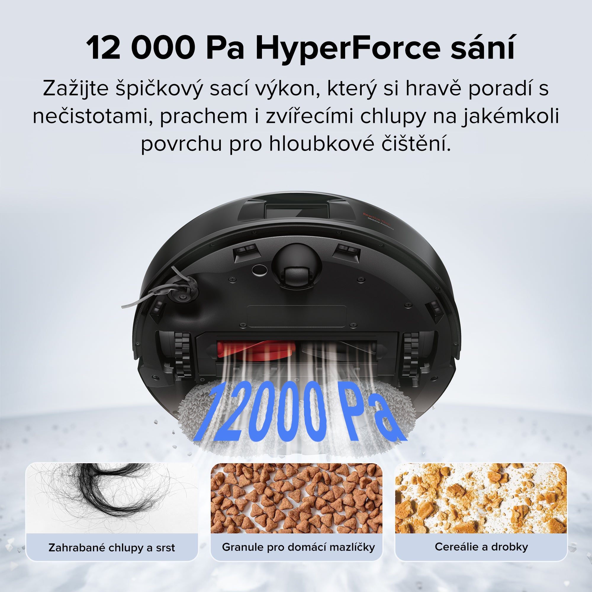 Působivý sací výkon 12 000 Pa* je navržen tak, aby odstranil vlasy a nečistoty ve štěrbinách podlahy a hluboko v kobercích. Při maximálním sání se otáčky jeho hlavního kartáče zvýší o 10 %, což zajišťuje optimální účinnost odstraňování prachu.