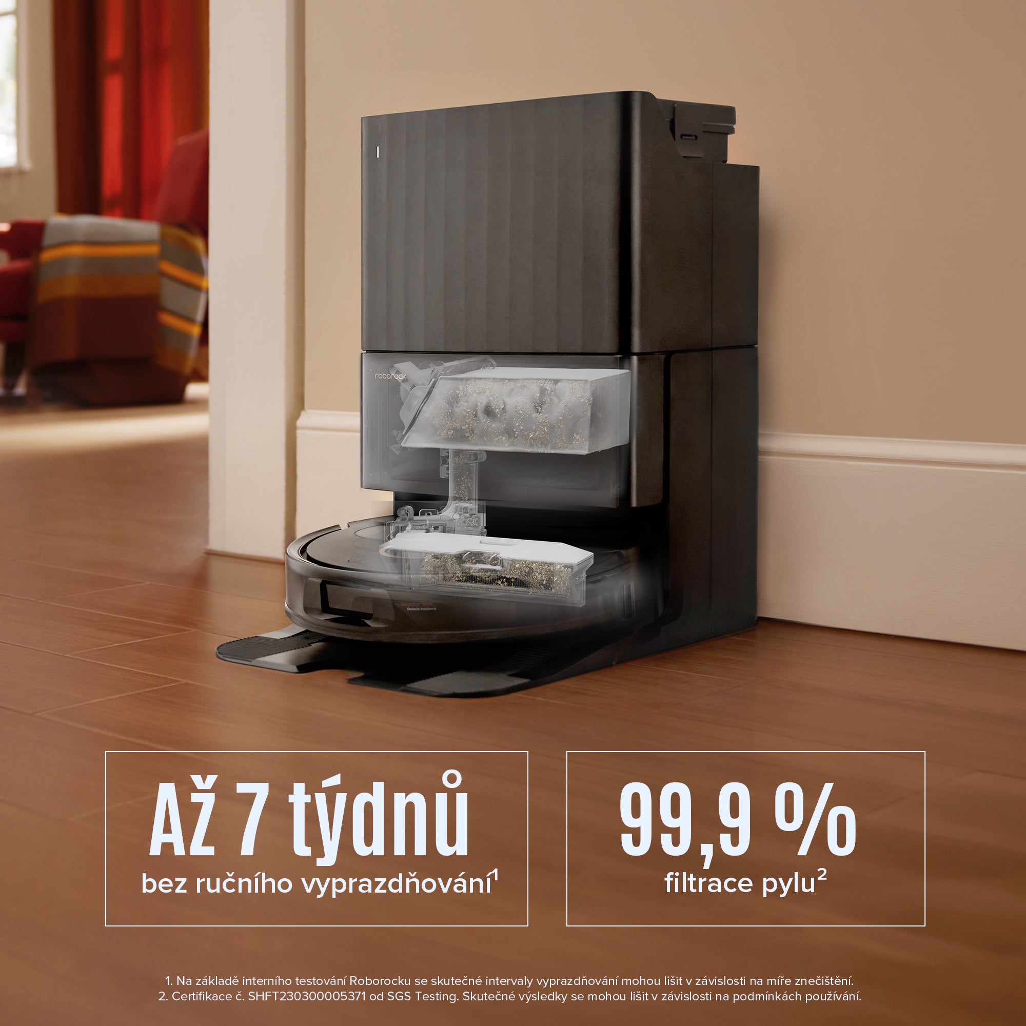 *Na základě interního testování společnosti Roborock v režimu Max+ s plně nabitou baterií podle norem IEC 62885-2:2021/5.11.