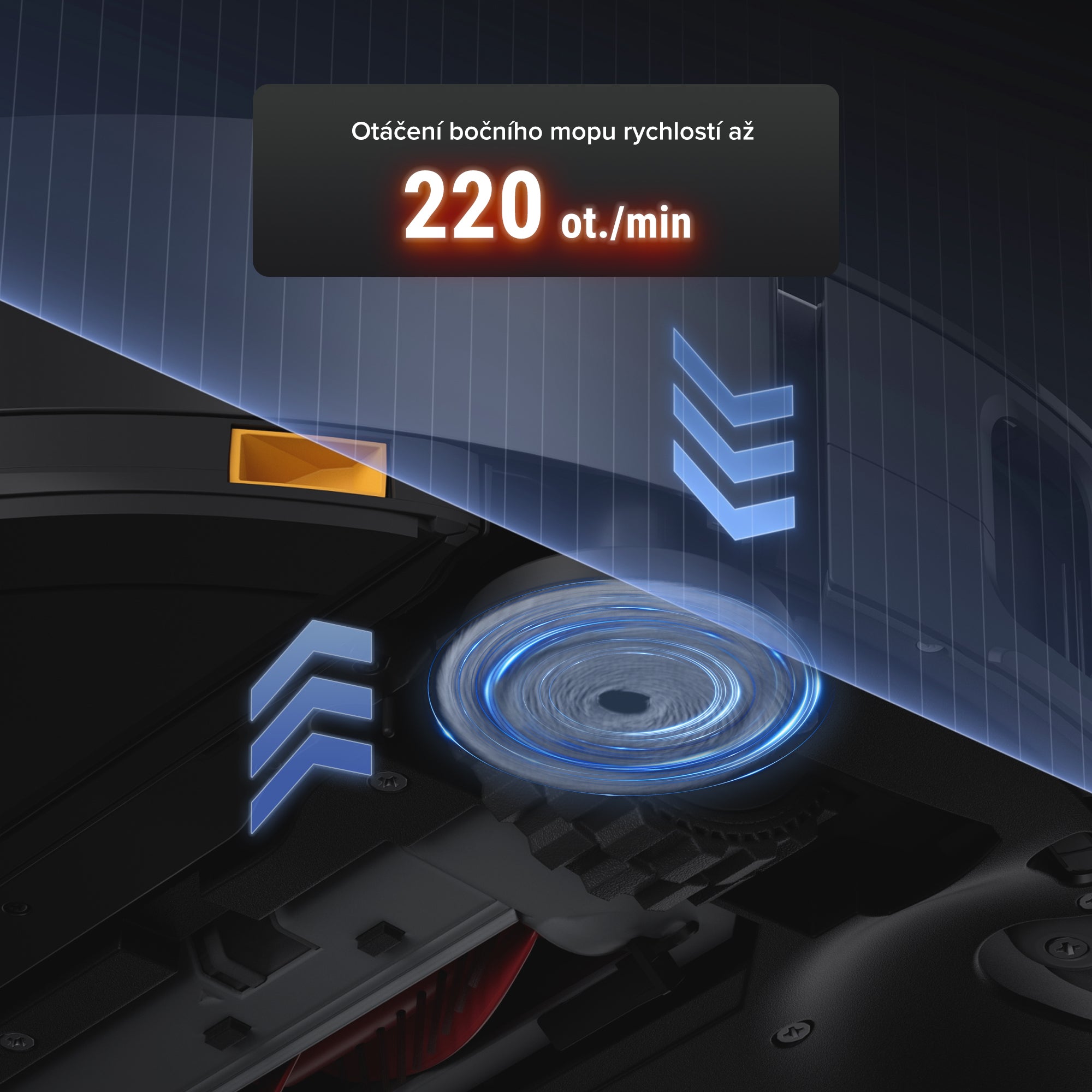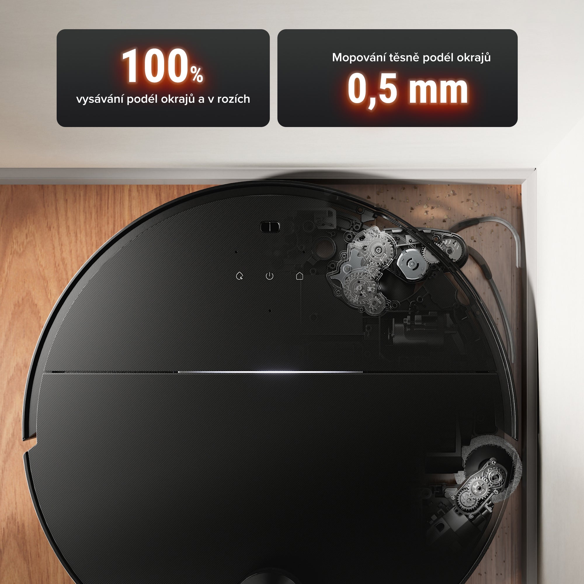 Mop na čištění podél okrajů se nyní může zvedat nezávisle na hlavním mopu a mopovat tak pouze v případě detekce okrajů, aby byl zajištěn optimální výkon vytírání podél okrajů.