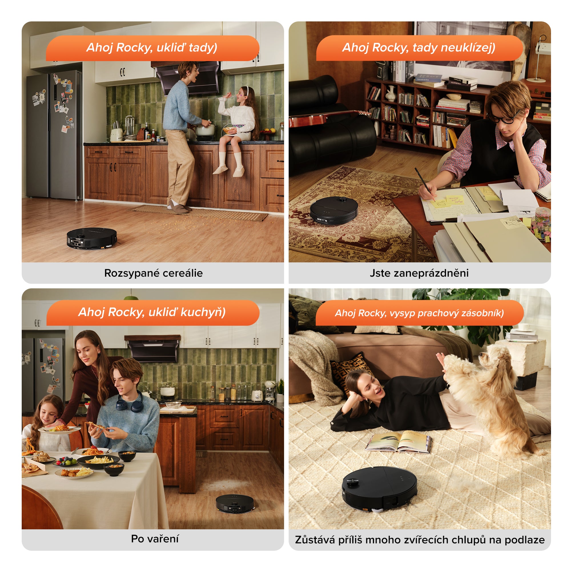 Stačí jednoduše vyslovit „Hello Rocky“, abyste rychle spustili úklid, a to i bez připojení k síti. Ať už pracujete, vaříte nebo jen odpočíváte, uklízení kolem vás nebylo nikdy jednodušší.